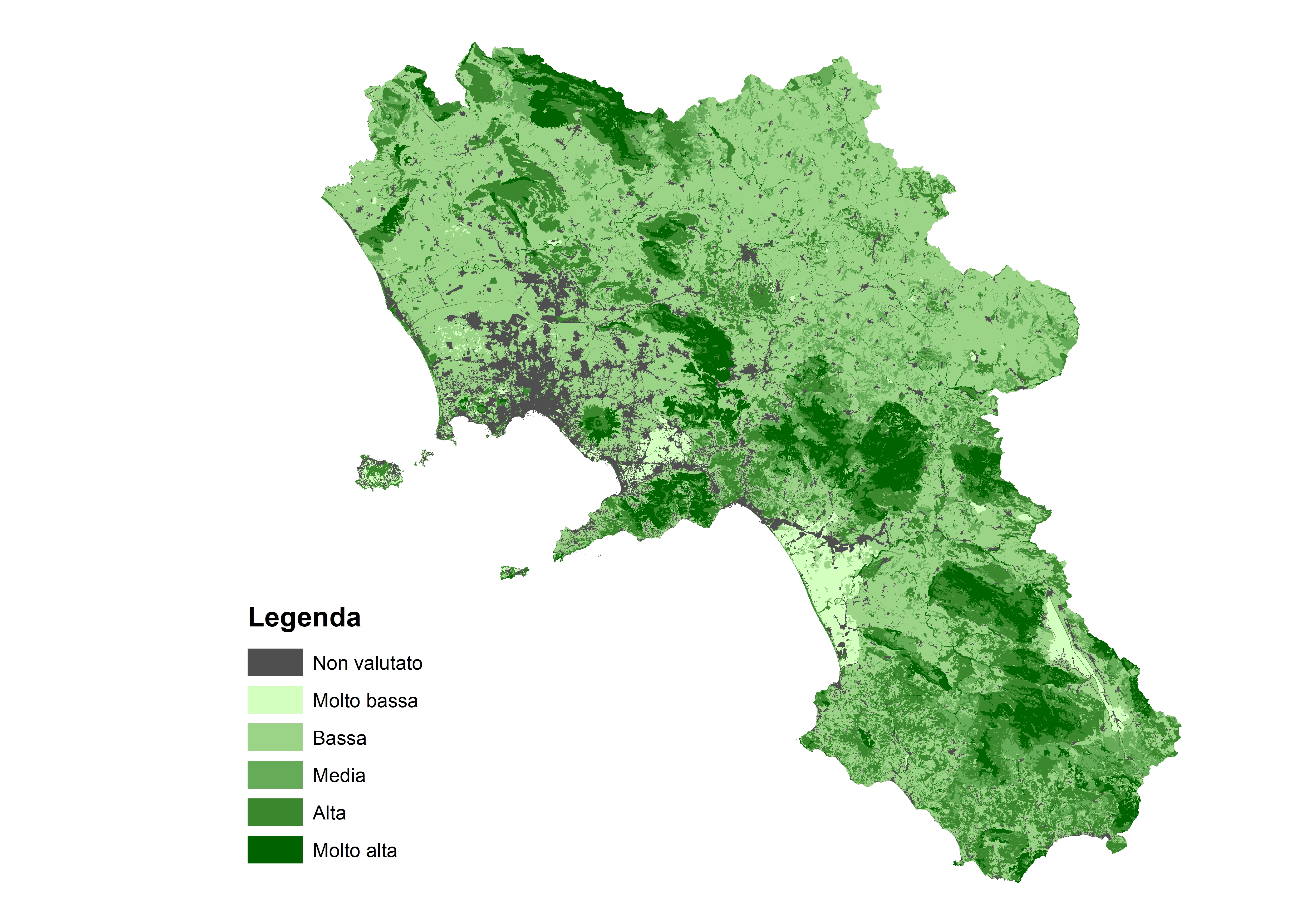 Il riferimento per la valutazione è la Carta degli Habitat, nella quale ogni poligono cartografato rappresenta un biotopo di uno specifico habitat. La valutazione avviene per ogni biotopo cartografato, non per tipologia di habitat. Dai calcoli vengono esclusi i centri urbani, le aree industriali , le cave e comunque tutte le aree occupate da infrastrutture. In Campania, con l’esclusione di tali aree, sono stati valutati 37.804 biotopi rispetto ai 42.792 totali della carta degli habitat.