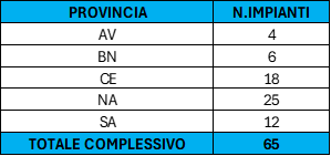 Complessivamente risultano censiti n. 1.048 impianti, così come riportato di seguito.
