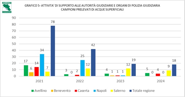 Nel corso degli ultimi anni si è consolidato il rapporto di collaborazione tra ARPAC e Autorità Giudiziarie e/o Polizie Giudiziarie nel combattere gli illeciti ambientali e si cerca di garantire, pur nel contesto di una sensibile riduzione del personale, le attività agenziali di supporto tecnico richieste.