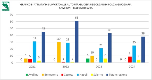 In linea generale, le attività di supporto ed assistenza tecnica che l'ARPAC fornisce alle Autorità Giudiziarie e agli Organi di Polizia, consistono sia in collaborazioni occasionali, di volta in volta richieste, sia in specifiche prestazioni espletate nella qualità di soggetto "ausiliario" su specifiche richieste.
