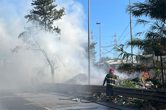 È in corso il monitoraggio di diossine e furani dispersi in atmosfera nella periferia nord di Napoli, a margine della Circumvallazione esterna alle spalle del carcere di Secondigliano, nei pressi del campo rom, dove, a partire dalle 15 circa, si è sviluppato un incendio che sta coinvolgendo rifiuti di varia tipologia depositati sul terreno (a una prima osservazione, le fiamme hanno coinvolto materiali vari, tra cui rifiuti urbani misti, resti di elettrodomestici, legname).